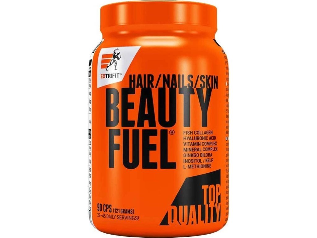 BEAUTYFUEL® je multikomponentný doplnok stravy obsahujúci kombináciu rybieho kolagénu, kyseliny hyalurónovej, aminokyseliny metionínu, extraktov z ginkgo biloba a chaluhy bublinatej, vitamínov skupiny B a komplexu minerálov selénu, zinku a medi v ich najlepšie vstrebateľných a využitých. A to všetko v kapsuliach pre dobrú stráviteľnosť a vstrebateľnosť, bez zbytočných spojív. V dennej dávke 4 caps je obsiahnuté 100% dennej dávky vybraných vitamínov a minerálov.