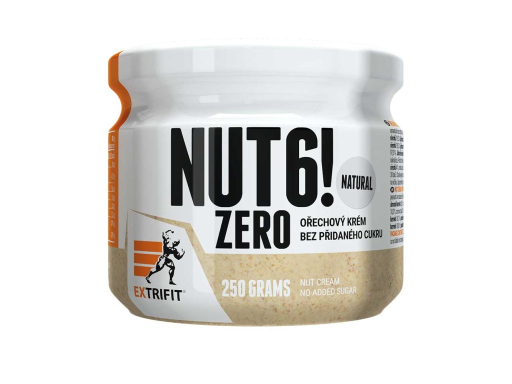 NUT 6! ZERO je orechová superpotravina od EXTRIFIT - krém z orechov, kokosu a arašidov, ktorý ponúkame v prírodnej (neochutenej) a troch lahodných príchutiach - čokoláda, slaný karamel a škorica. Krém sa skladá z jadier kešu, lieskových orechov, mandlí, arašidov, vlašských orechov a kokosovej dužiny. NUT 6! ZERO sa vyrába priamo vo výrobných halách spoločnosti Extrifit v Českej republike, od A po Z!
