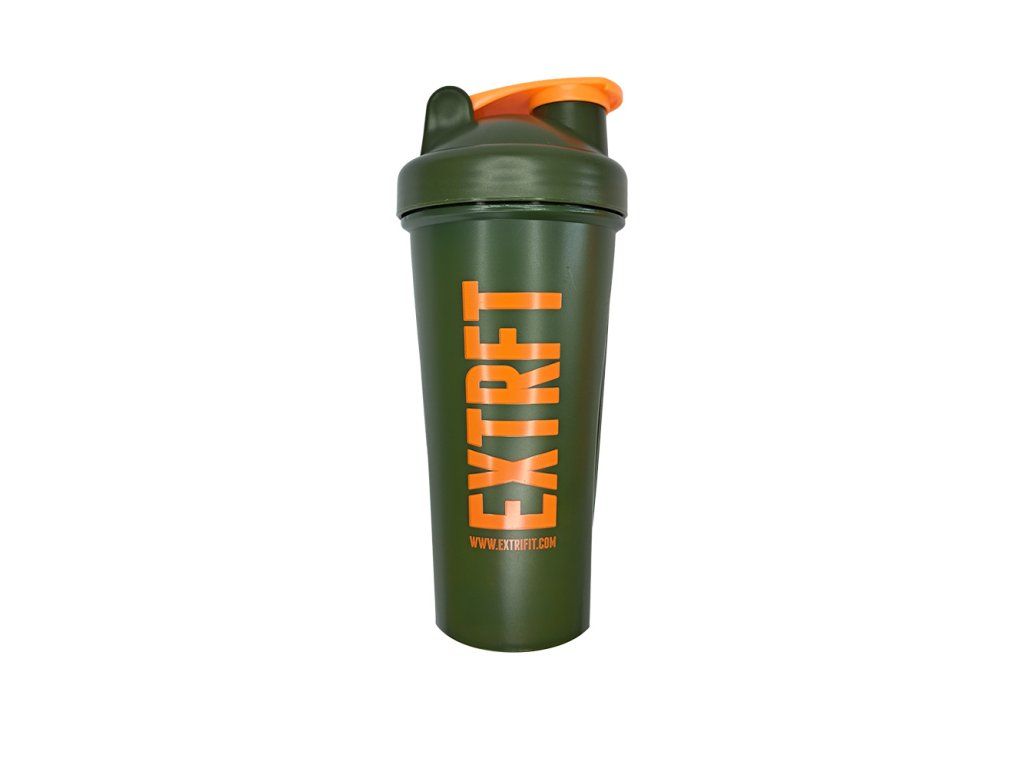 Šejker je oranžovej farby s objemom 600 ml, štíhly, smerom ku dnu sa zužuje. Uzáver šejkra je skrutkovací, malé viečko je zaklapávacie. Po stranách sú protišmykové tvarované časti, takže sa šejker dobre drží. Vzadu nájdete rysky v ml/oz na odmeranie a priehľad pre vizuálnu kontrolu náplne, vpredu je logo Extrifit. Šejker obsahuje pružinovú guľôčku na lepšie rozmiešanie nápoja. Obsah cez kvalitne vyriešené skrutkovanie nepreteká. Náplň šejkra je vidieť cez spriesvitnený bok s mernou stupnicou. Objem šejkra zobrazený na poslednej ryske je 600 ml.