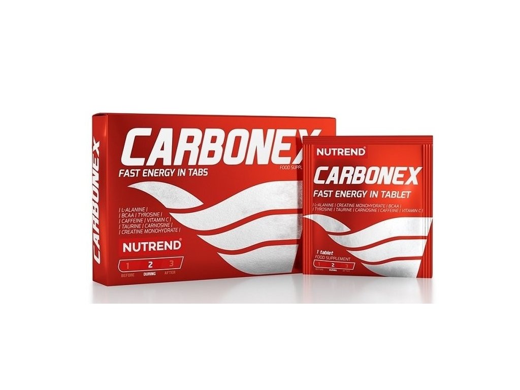Energetické tablety CARBONEX obohatené o energizujúce a stimulujúce látky - kofeín, taruin, horčík, vitamín C, L-CARNOSINE, L-Alanín a BCAA v optimálnom pomere 2:1:1. Prevaha rýchlo využiteľnej formy energie. Celkový efekt sa umocňuje rozpustením tablety v ústach, kedy dochádza k prestupu účinných látok cez sliznicu. BCAA - L-Leucín, L-Valin, L-izoleucín v optimálnom pomere 2:1:1 pre ochranu svalovej hmoty. L-Alanín a CARNOSINE sú látky znižujúce zakyslenie organizmu. Taurín pre posilnenie nervovosvalových funkcií a oddialenie psychickej únavy. Horčík pracuje ako prevencia vzniku nervosvalových a svalových kŕčov.