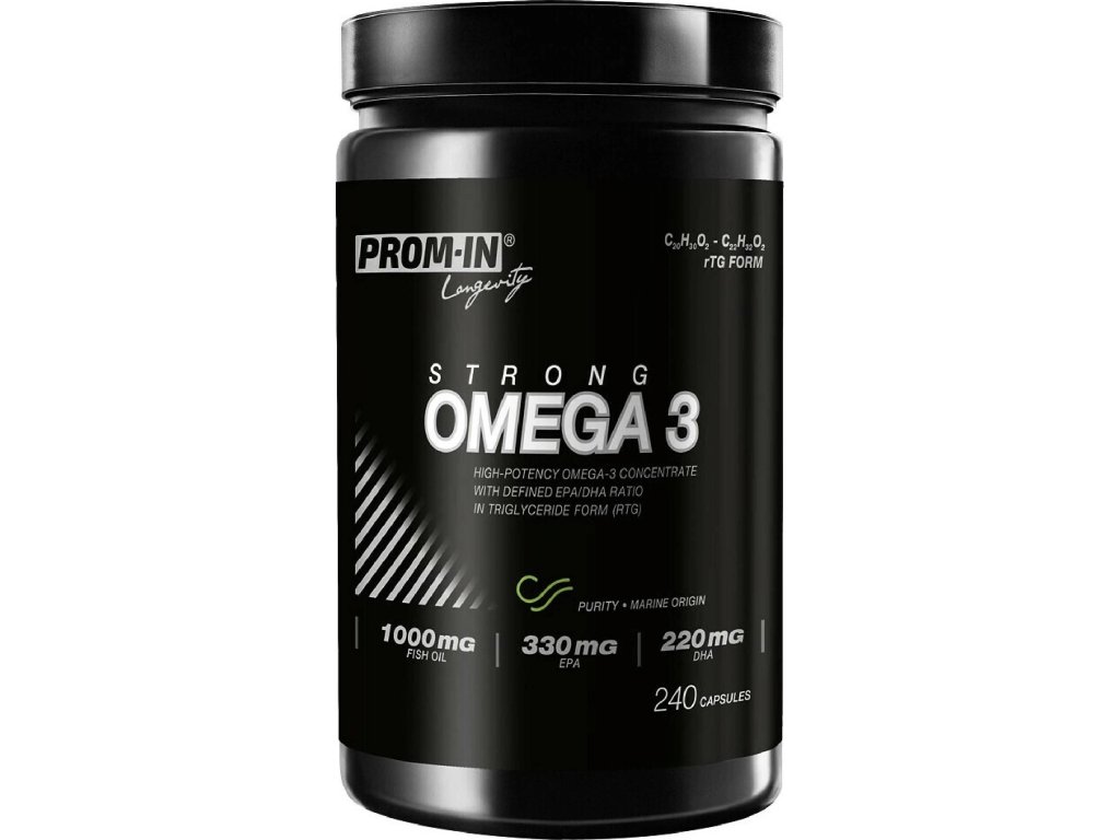 Omega 3 Strong je doplnok stravy s vysokým obsahom omega-3 mastných kyselín EPA a DHA vo forme re-esterifikovaných triglyceridov (rTG). Táto forma je prirodzená pre ľudský organizmus a je spájaná s dobrou biologickou dostupnosťou.