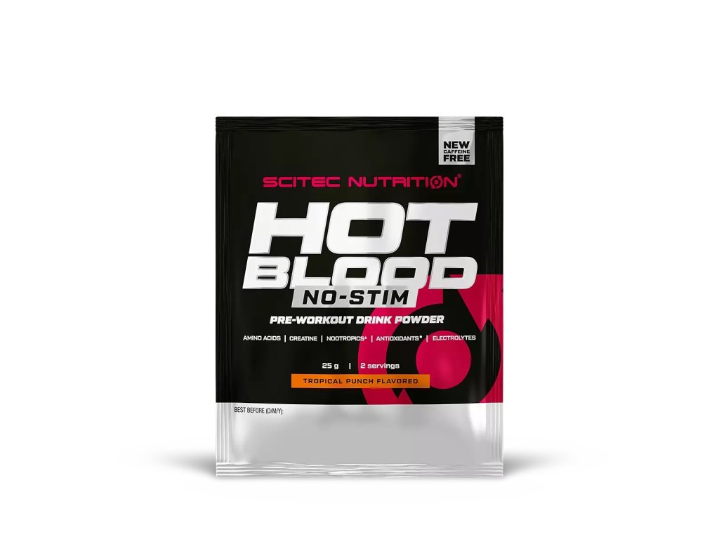 Nová generácia obľúbenej predtréningovky bez stimulantov! Scitec Nutrition Hot Blood No-Stim je komplexná predtréningovka, ktorá sa vyznačuje vysokým obsahom kreatínu, aminokyselín, nootropík, antioxidantov a elektrolytov. Obsahuje jednu z najpreskúmanejších foriem kreatínu – kreatín monohydrát, pri ktorom je dokázané, že zvyšuje fyzickú výkonnosť v priebehu krátkodobých po sebe nasledujúcich dávok veľmi intenzívneho cvičenia. Pozitívne účinky sa prejavia už pri dennej dávke 3 g kreatínu.