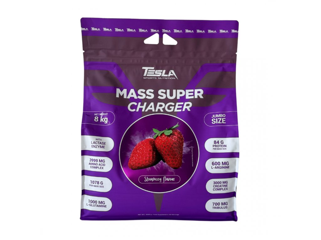 Tesla Mass Super Charger môže pomôcť vašim svalom rásť vďaka svojej viaczložkovej sacharidovej matrici, vysokému obsahu bielkovín a pridaným aminokyselinám v optimálnom pomere 2:1:1, ktoré podporujú vstrebávanie bielkovín. Pridaný bol aj kreatín, ktorý pomáha naplniť svaly vodou a podporiť ich ďalší rast, spolu so starostlivo vybraným komplexom vitamínov, ktorý podporuje schopnosť tela využívať bielkoviny a sacharidy na energiu a rast svalovej hmoty.