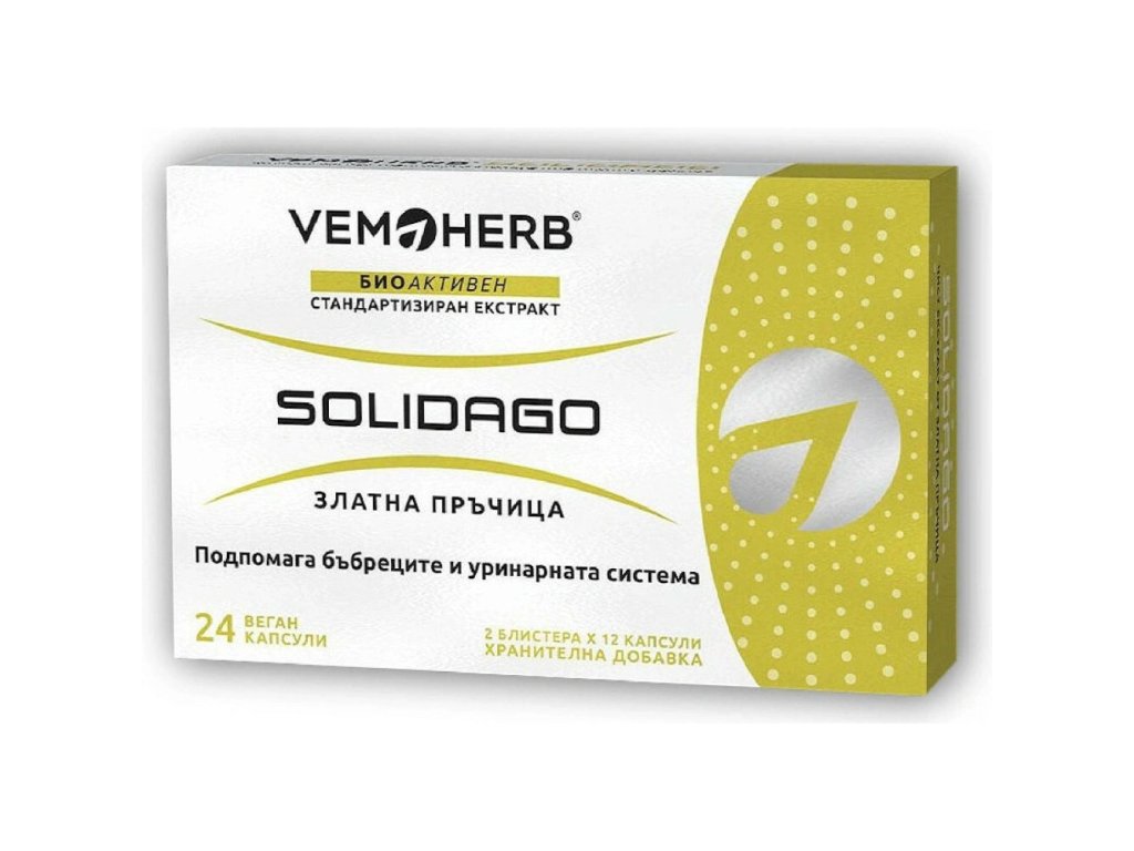 SOLIDAGO Výživový doplnok. - Silný extrakt z bulharského Zlatobyľa - Bunková výživa pre obličky a močové cesty (trofogenerátor) - Prírodné diuretikum (vylúčenie prebytočnej vody) Vemoherb Solidago obsahuje suchý štandardizovaný extrakt z nadzemnej časti rastliny Solidago vigaurea (Zlatobyľ obyčajný). Obsahuje veľmi široké spektrum biologicky aktívnych substancií – flavonoidy Rutin , quercetín a kempferol, glykozidy astragalín a rutosid, saponíny, fenolické zlúčeniny, esenciálne oleje, terpény, antokyanidiny a ďalšie. Tieto látky vytvárajú veľmi účinnú synergickú zmes zameranú na podporu obličiek, močového ústrojenstva, odvedenie nadbytočnej vody z tela a ďalších oblastí. Hlavnými látkami v extrakte sú spomínané flavonoidy, ktorých vlastnosti súvisia s vylučovaním sodíkových iónov z tela a tým pádom aj s procesom tvorby moču. nadbytočnej vody z tela , vylučovaním odpadových látok. Bulharský Zlatobyľ = najvyšší obsah aktívnych látok Zlatobyľ obyčajný je rastlina s dlhú tradíciou v ľudovom liečiteľstve. so sa na mnohých miestach severnej pologule, pričom obsah biologicky aktívnych látok sa so podľa regiónu, kde je rastlina zozbieraná, a tiež podľa doby zberu. Regiónom, kde vďaka vhodnej kombinácii prostredia a podnebia rastie Zlatobyľ s najvyšším obsahom biologicky aktívnych látok, je Európa. Veľmi tiež záleží na dobe zberu – obsah biologicky aktívnych látok je typicky najvyšší v júni a septembri. Solidago Vemoherb pochádza z Bulharska – bulharský Zlatobyľ patrí medzi európske odnože rastliny, u ktorých bol zaznamenaný najvyšší obsah účinných látok (konkrétne pri rutine, jednej z mnohých aktívnych substancií, je garantovaný obsah 7,5 %).